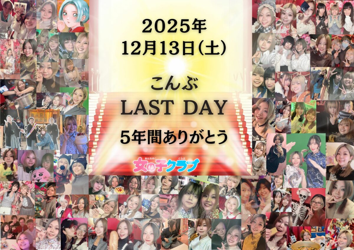 5年間勤めてくれた「こんぶさん」12月13日(土)で女の子クラブを退職しますのでこんぶさんラストデー兼バースデーを開催いたします!【ありがとう、お誕生日おめでとう、新たな門出のお祝い】を直接お伝えいただけると喜んでくれると思います😆✨5年間本当にお疲れ様でした!!!