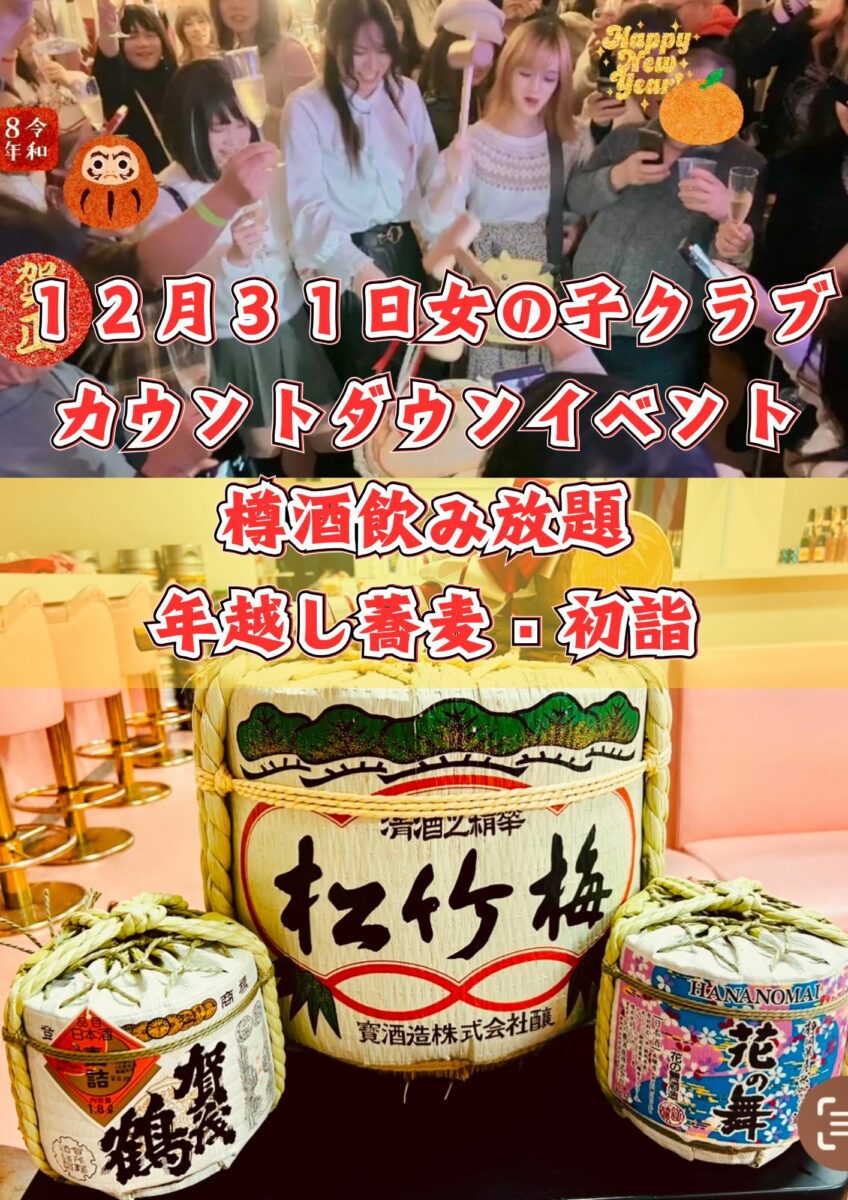 【イベント】女の子クラブ毎年恒例の12/31カウントダウン年越しパーティー✨🌄 今年も年越し蕎麦&日本酒飲み放題(樽酒)ご用意しています🍶✨