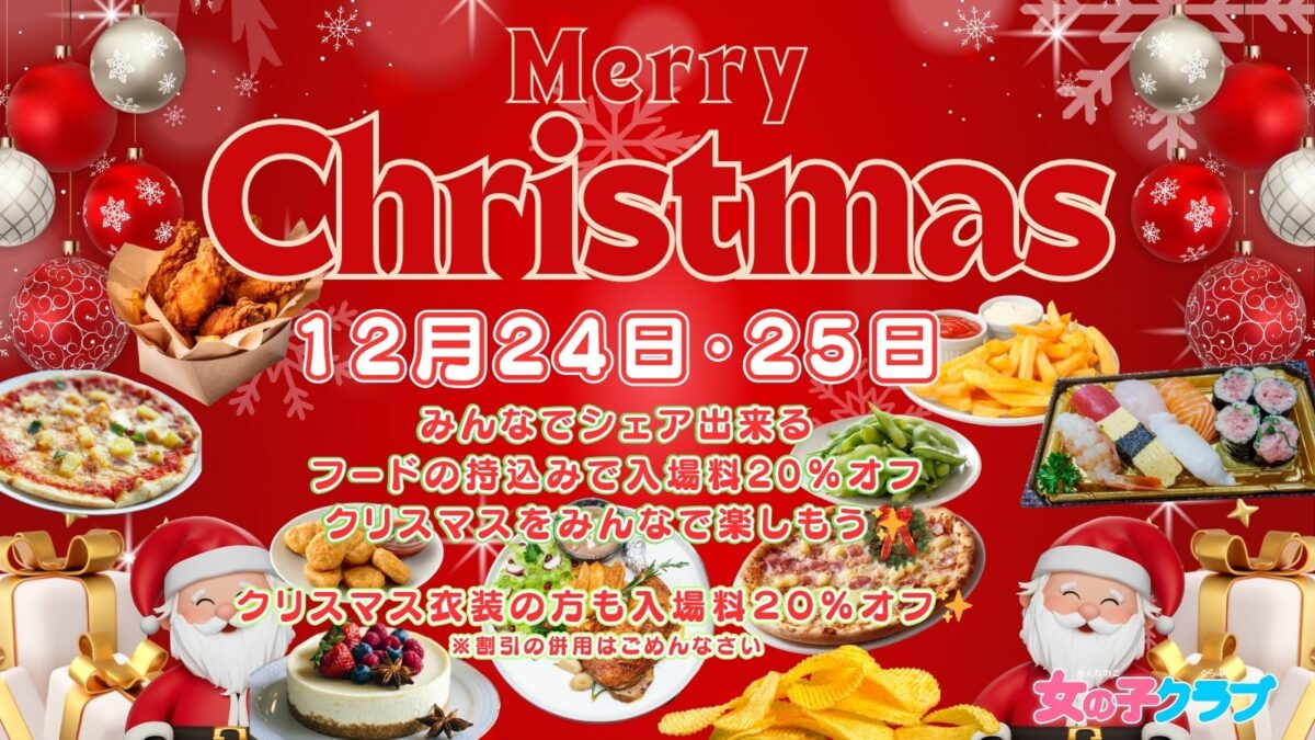 12月24日・25日はクリスマス🎄✨みんなとシェア出来るフードの持込、クリスマス衣装で割引あり🤶🎅🎄✨