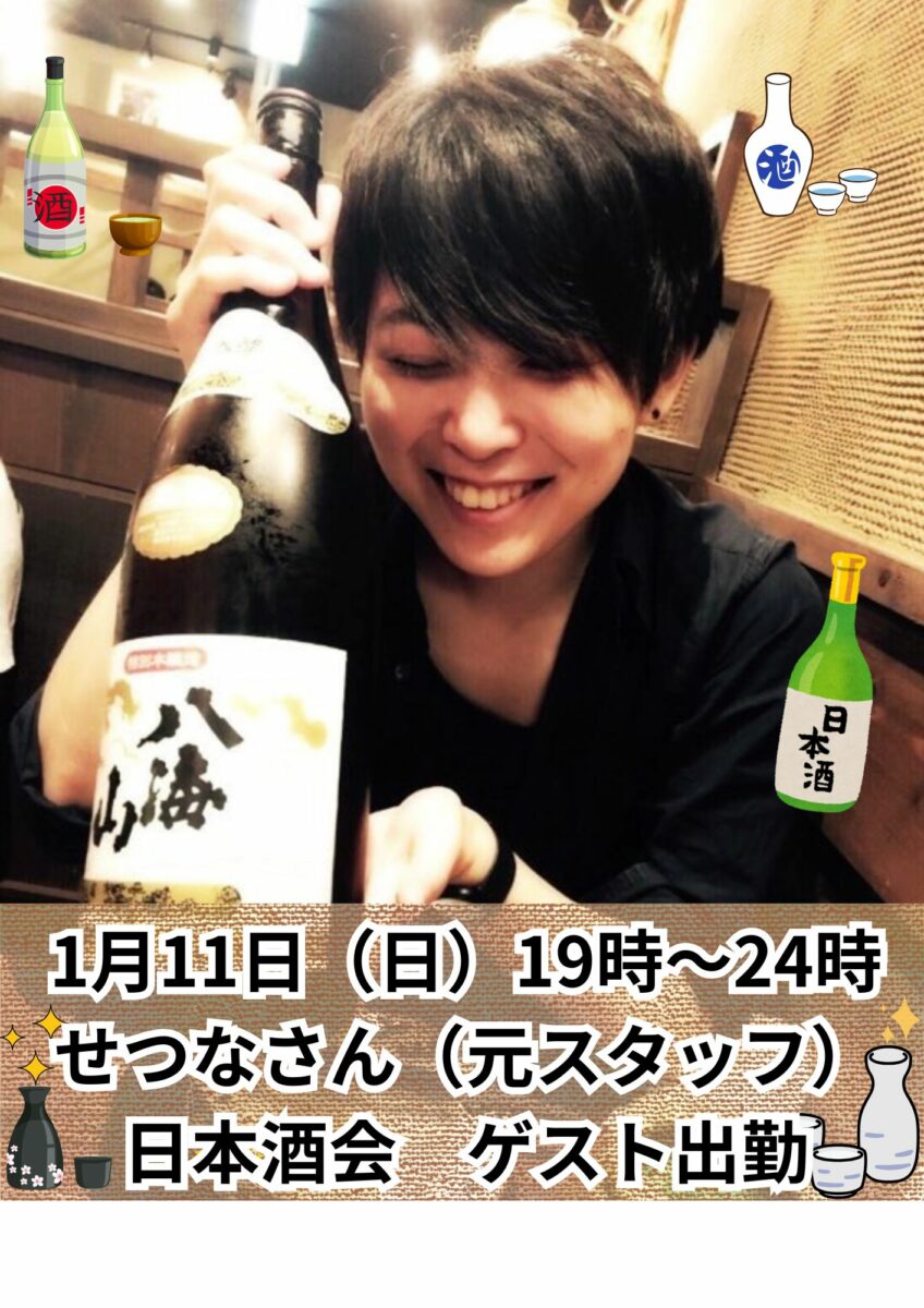 1月11日(日)19時〜23時で日本酒会を開催しています🍶✨(※イベント後はそのまま朝5時まで営業しています)