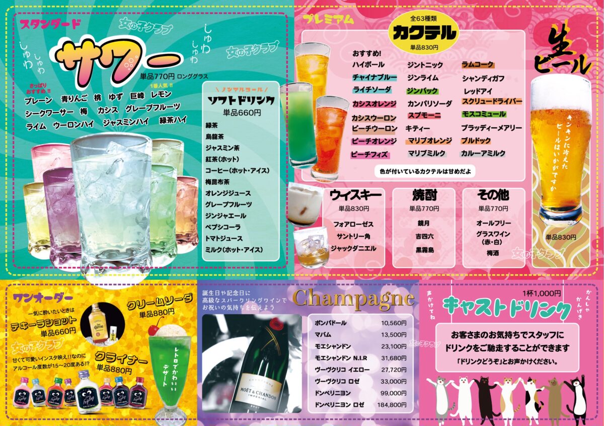 変更箇所はシャンパン、テキーラ観覧車、キャストドリンクです。