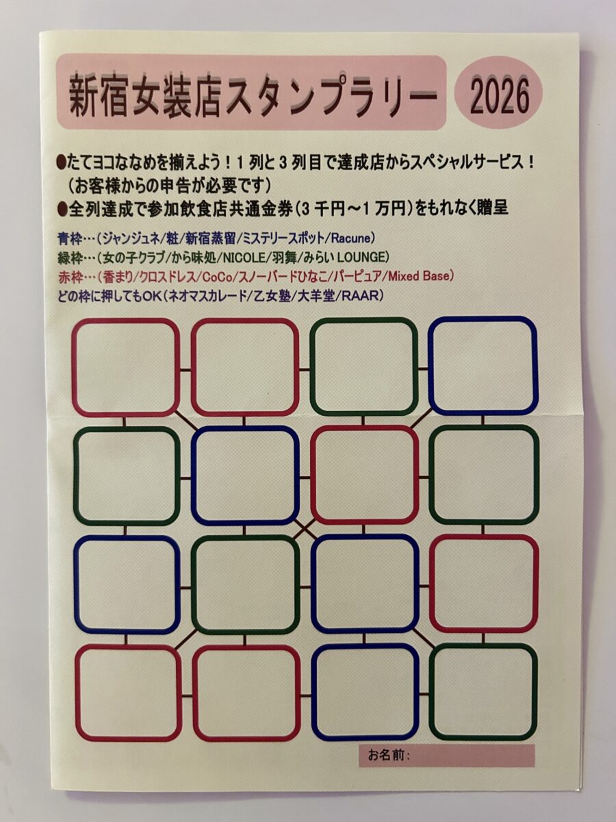 2月20日(金)から新宿の女装店スタンプラリーが開催😃✨