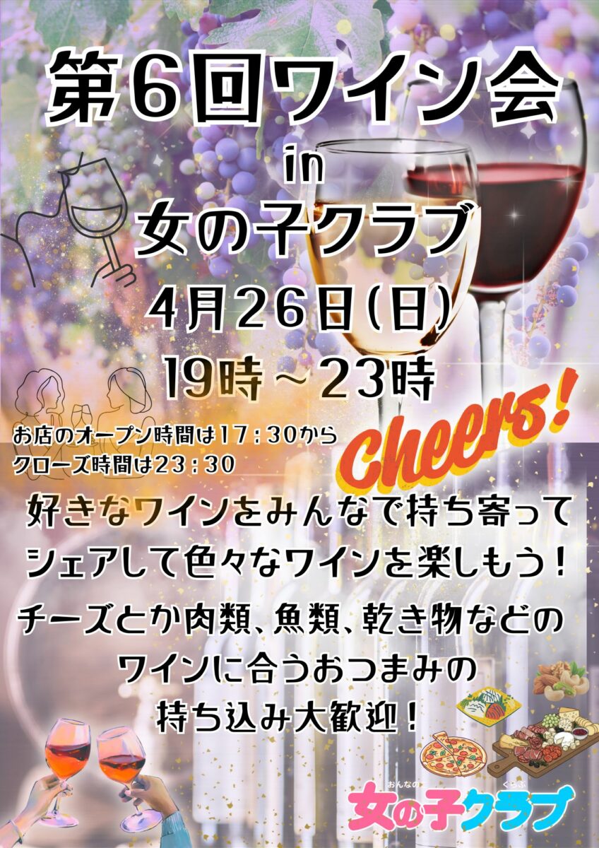 第5回目も大好評4月26日(日)18:00〜22:30にて第5回ワイン会を開催いたします✨(※お店の営業時間は17:30〜23:30)