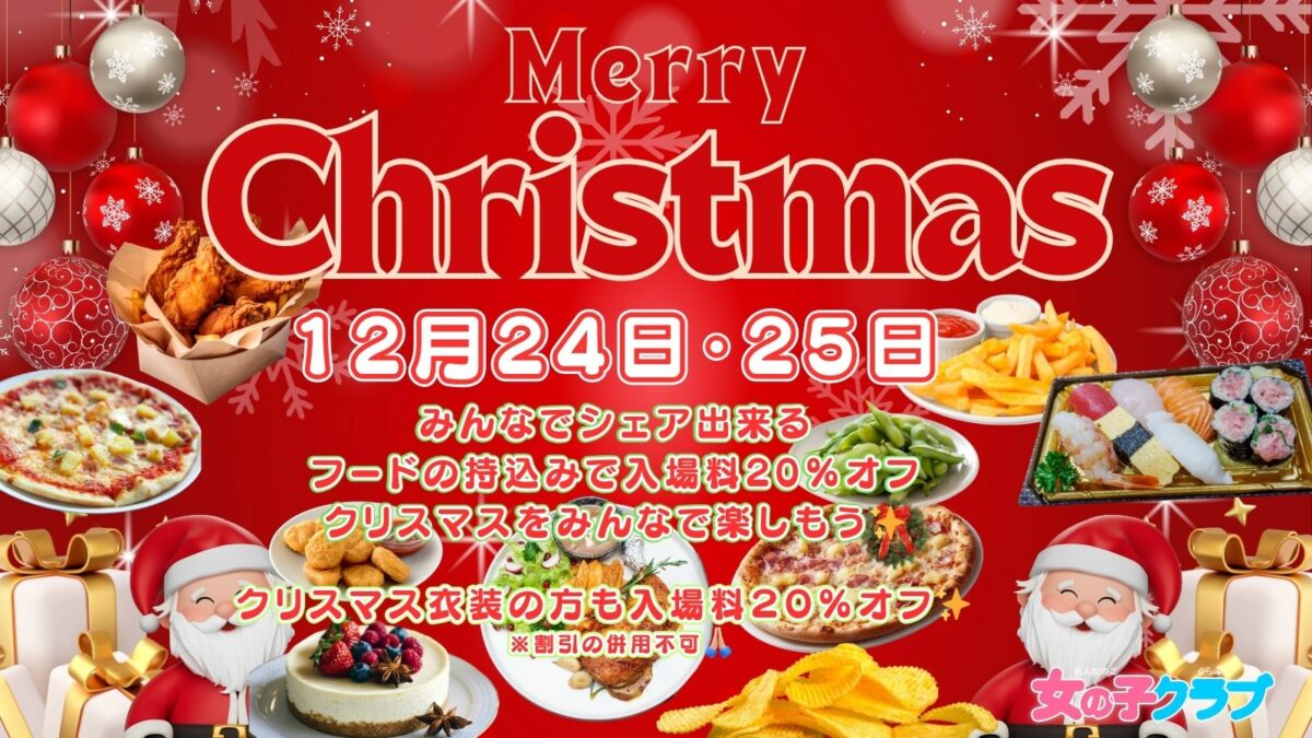 12月24日・25日はクリスマス🎄✨みんなとシェア出来るフードの持込、クリスマス衣装で割引あり🤶🎅🎄✨